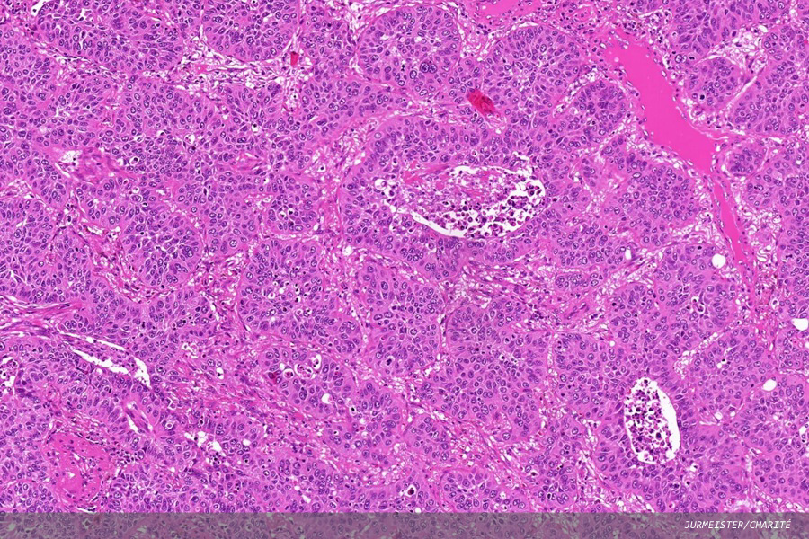 Invasive lung squamous cell carcinoma (LUSC; pictured above) accounts for approximately one-quarter of all lung cancers, but therapeutic options for LUSC remain limited, primarily due to the absence of well-defined, targetable molecular alterations. Therefore, histopathologic features are increasingly being explored as tools to enhance prognostic accuracy and guide treatment decisions.